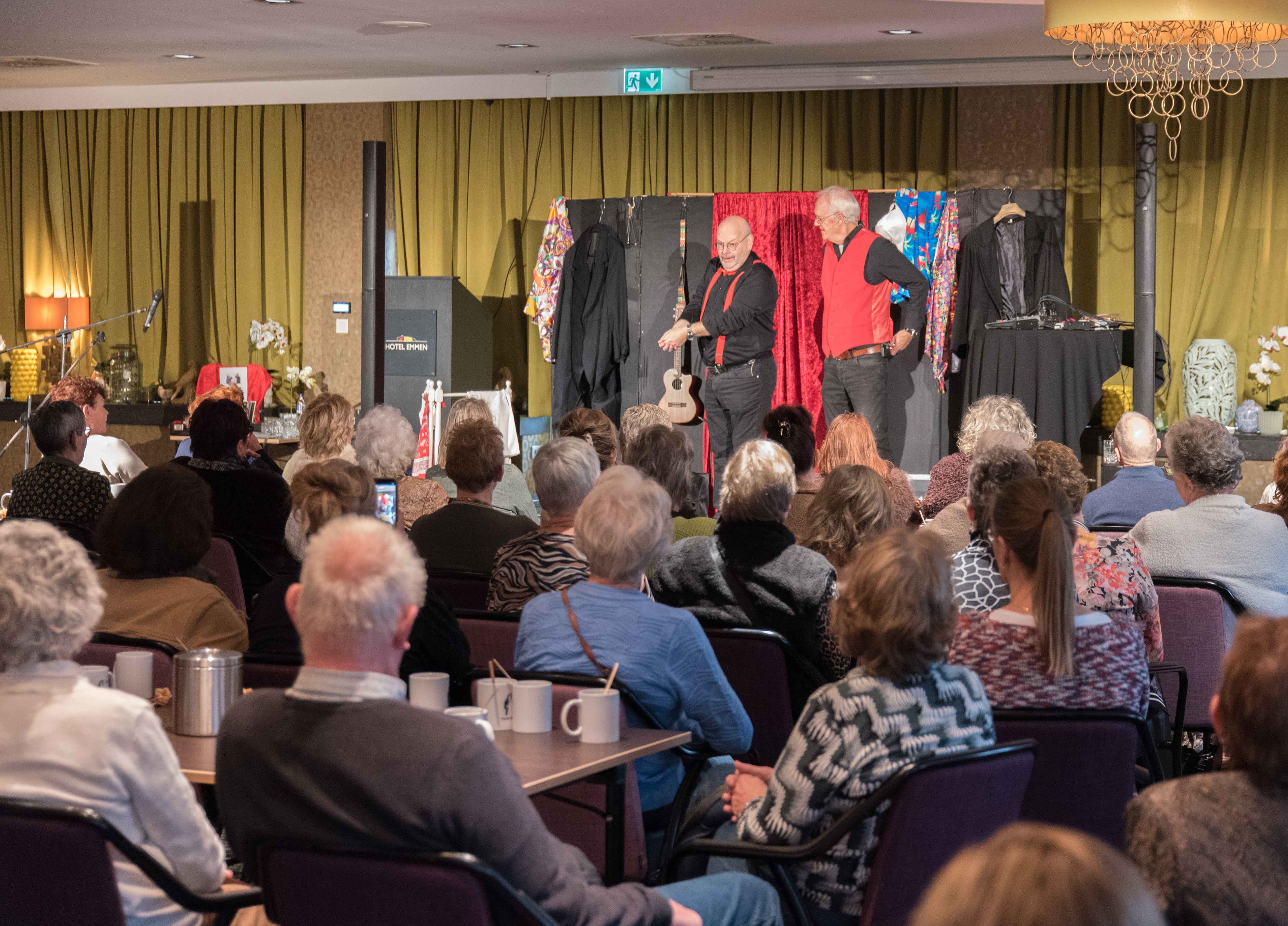 Na de officiële opening was het tijd voor het optreden van het Emmens kleinkunstduo 2 VOUDT met hun nieuwste programma. Aan de reacties tijdens het optreden kon je afleiden dat hun humor zeer in de smaak viel bij het publiek.
