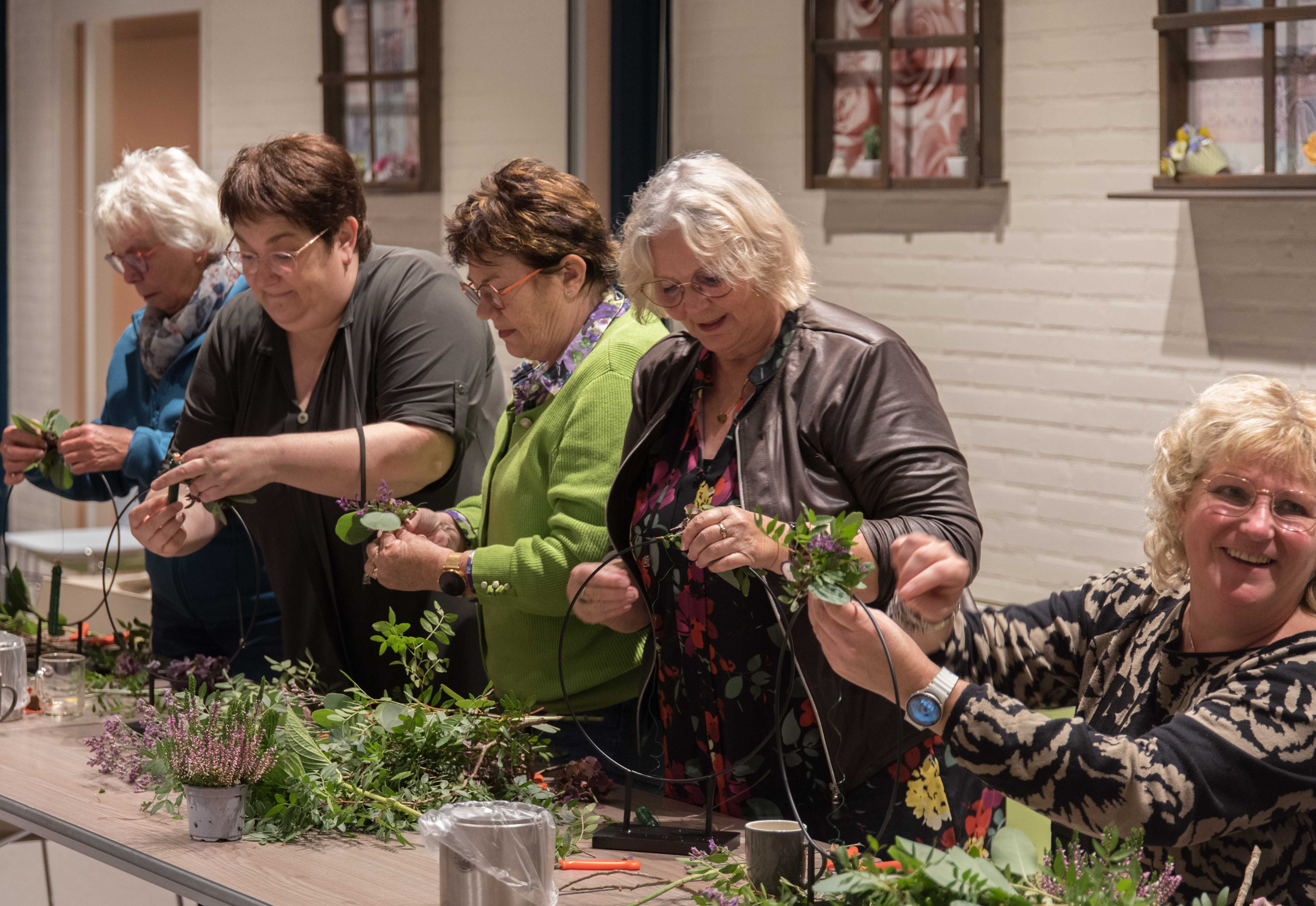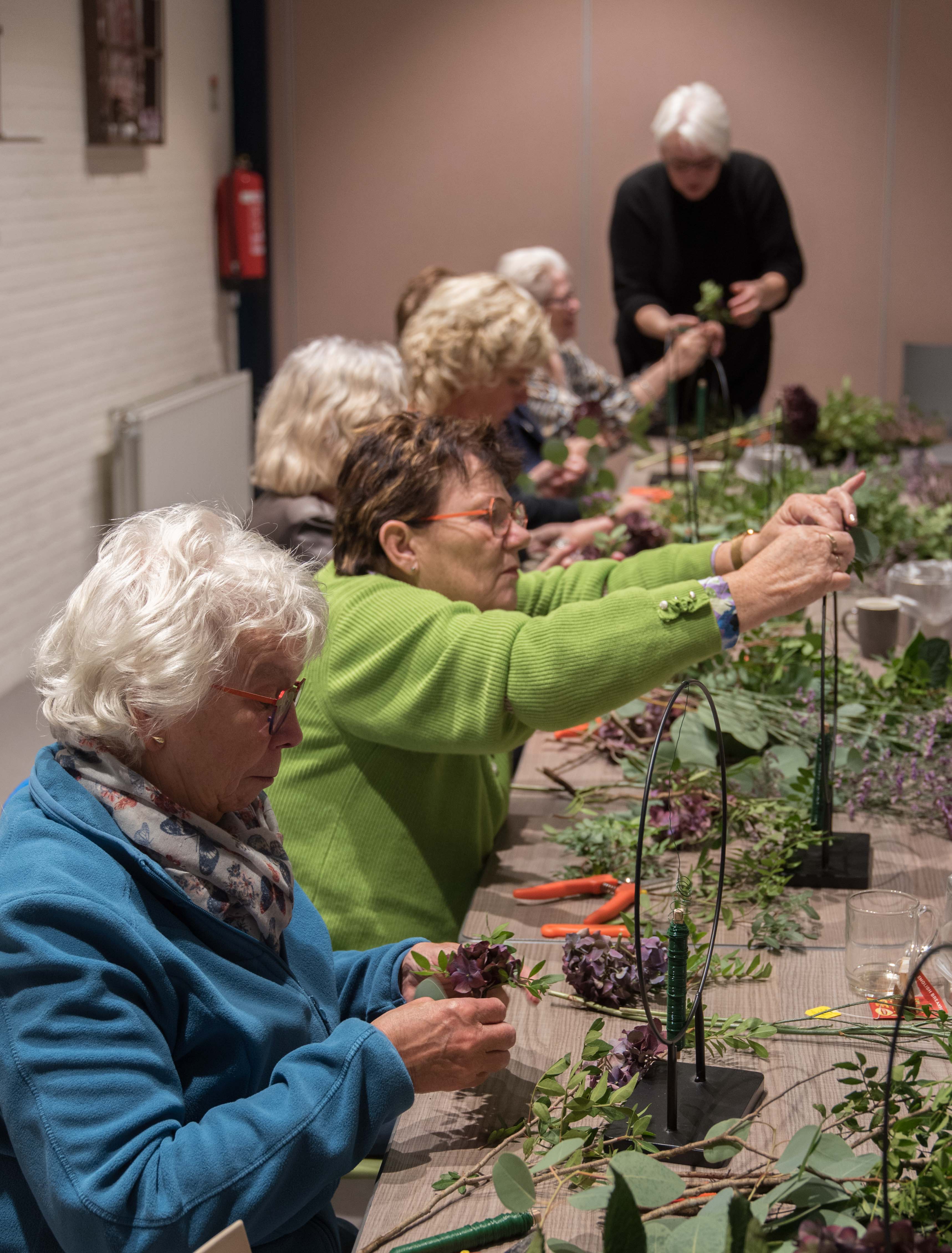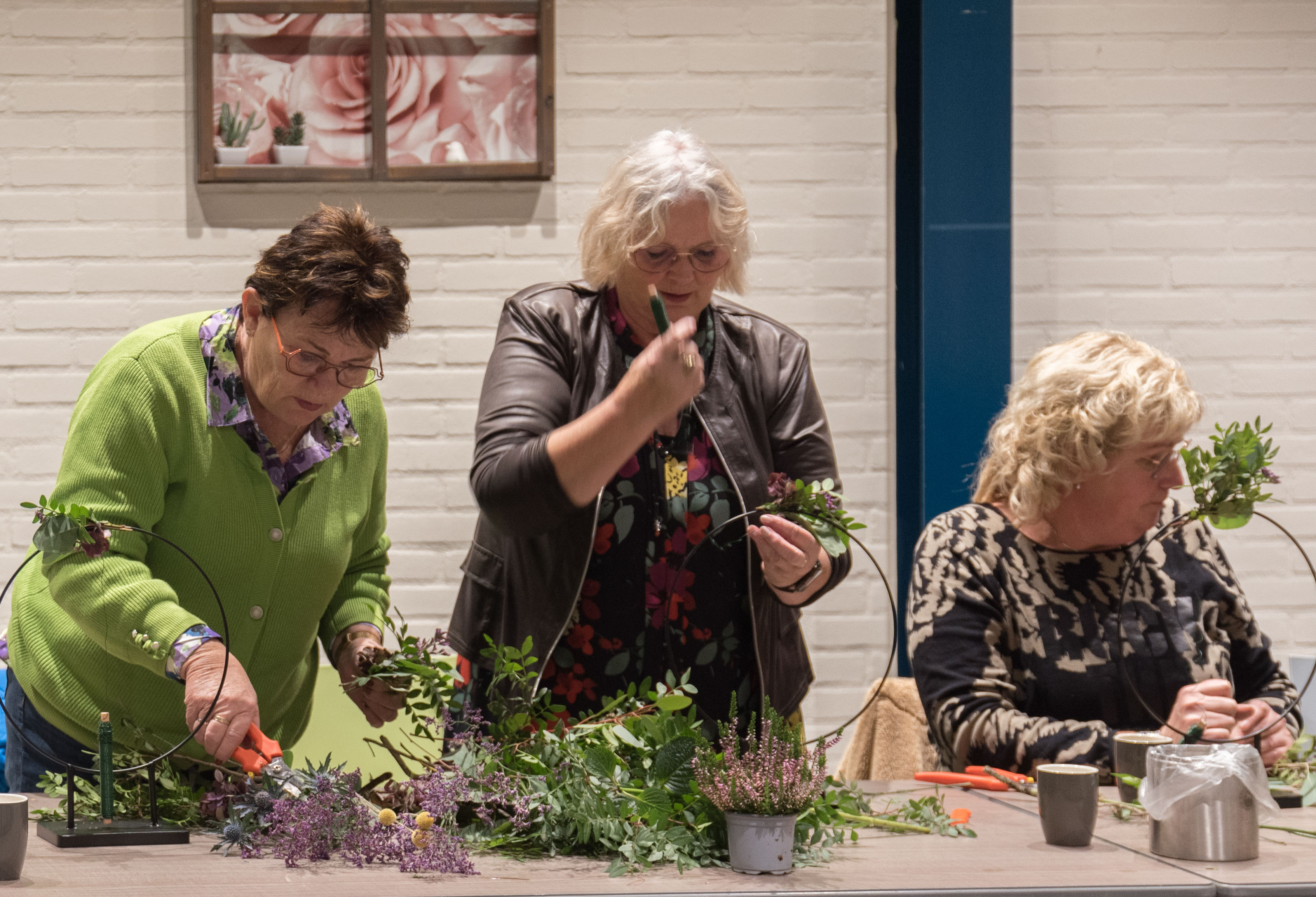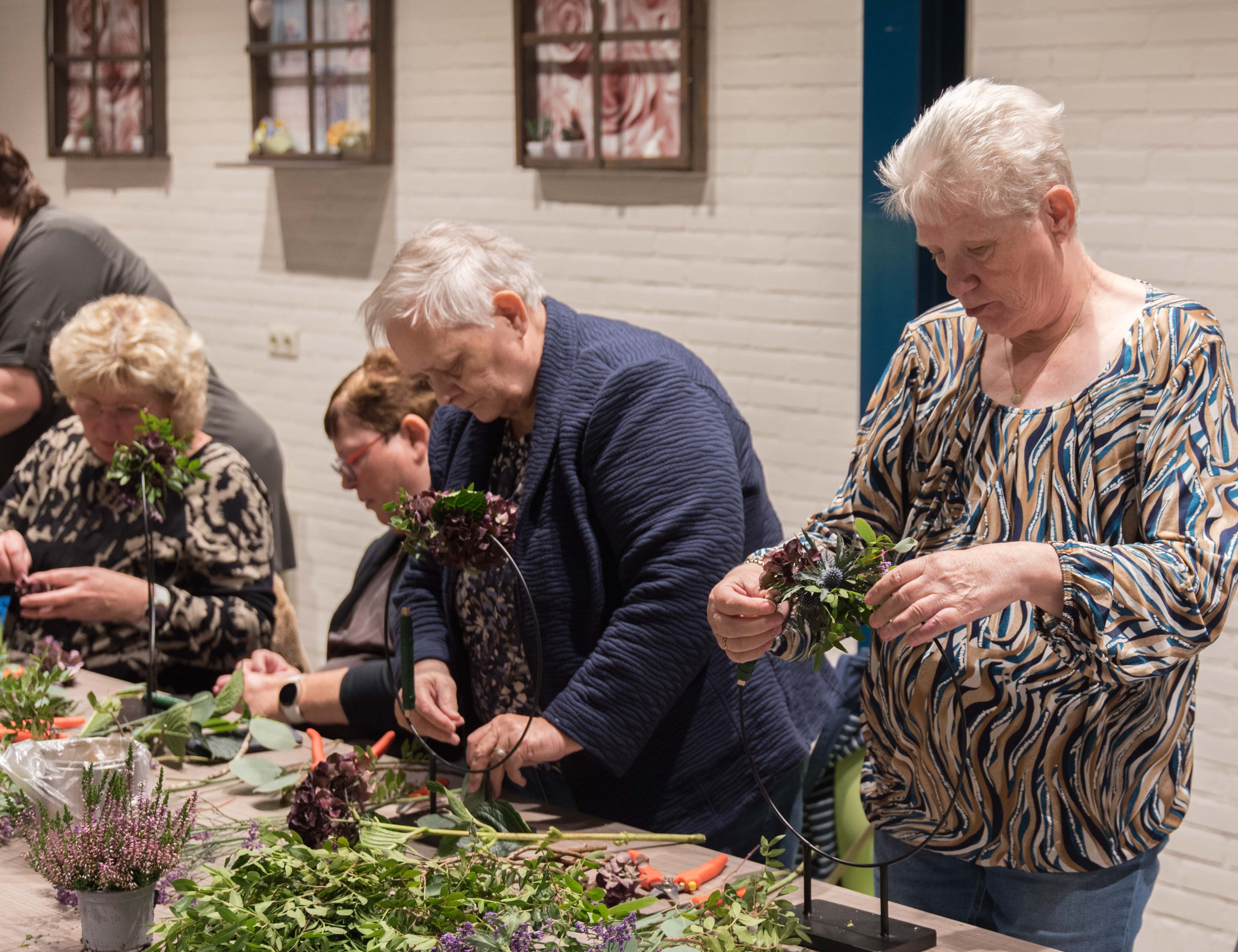 Contactpunt Mantelzorg de Monden organiseerde een drietal avonden waar de deelnemers een prachtig bloemstuk op een standaard maakten.