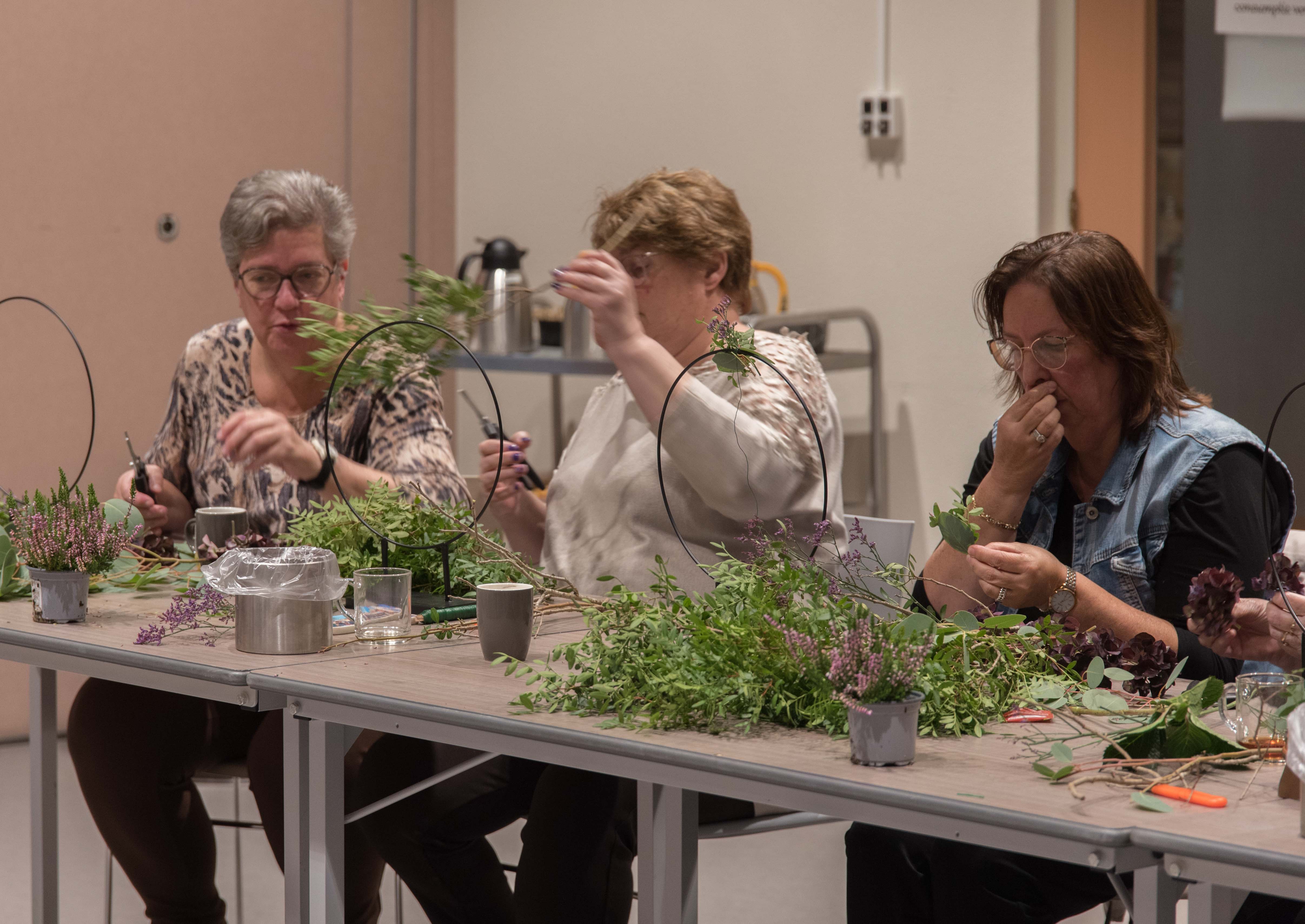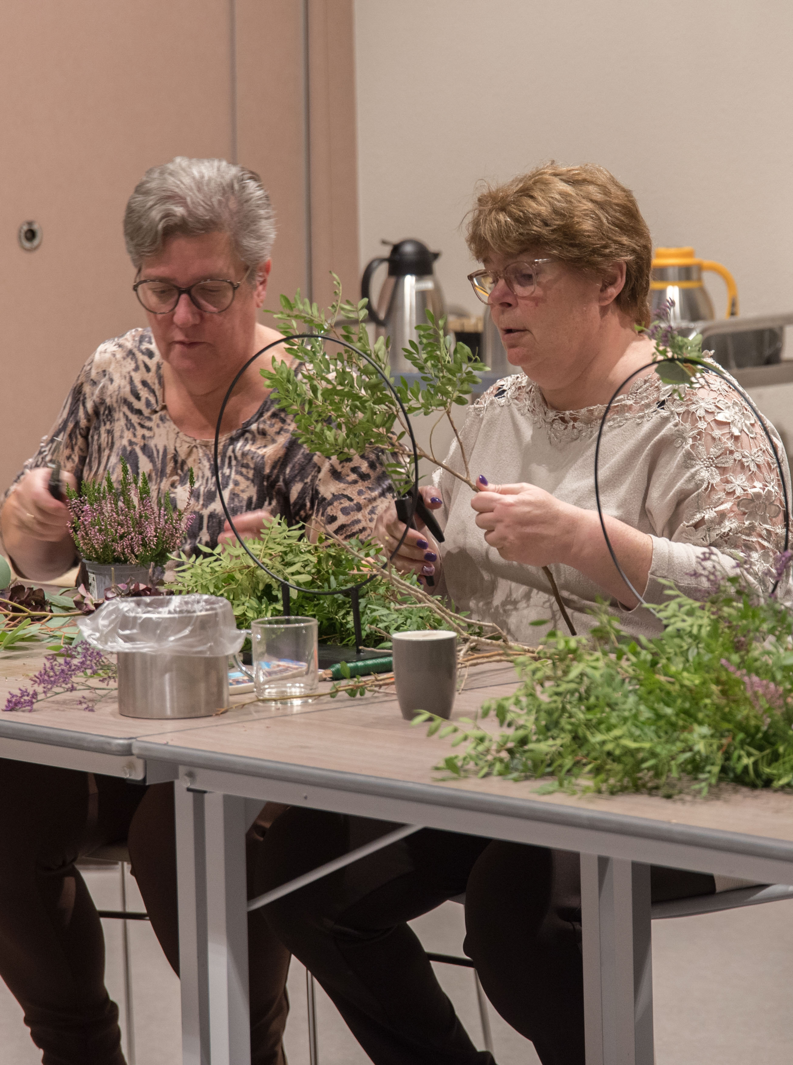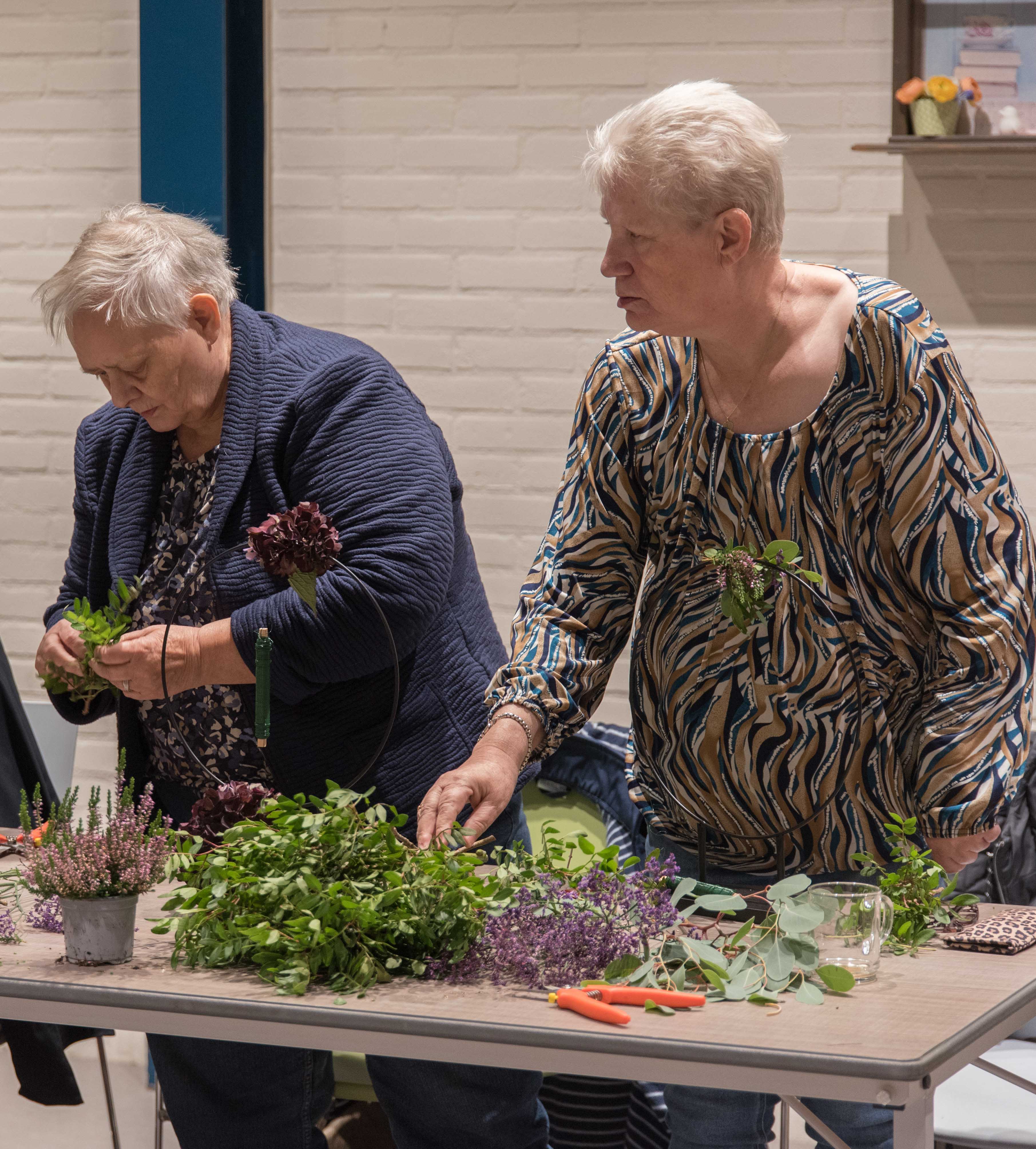 Contactpunt Mantelzorg de Monden organiseerde een drietal avonden waar de deelnemers een prachtig bloemstuk op een standaard maakten.