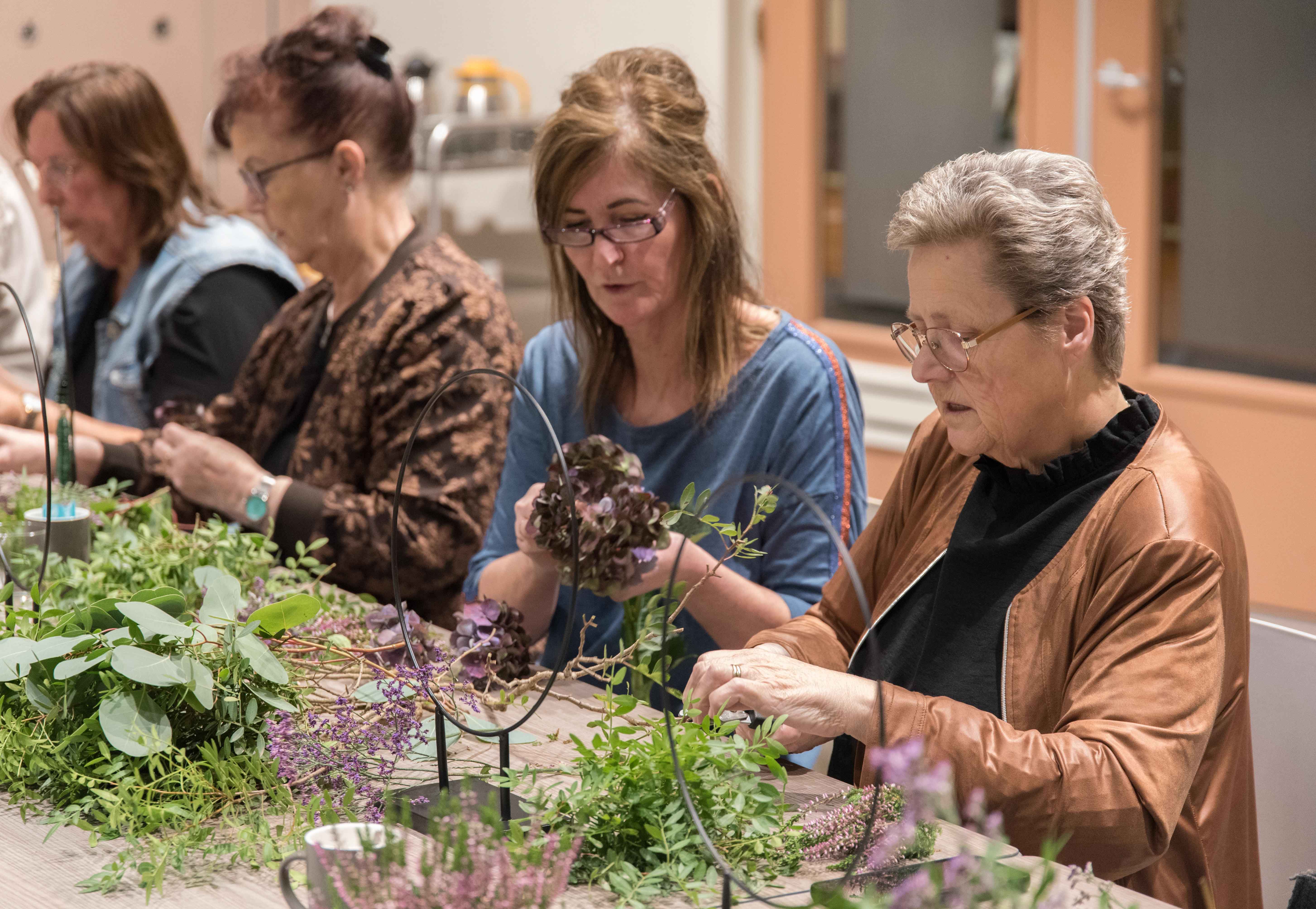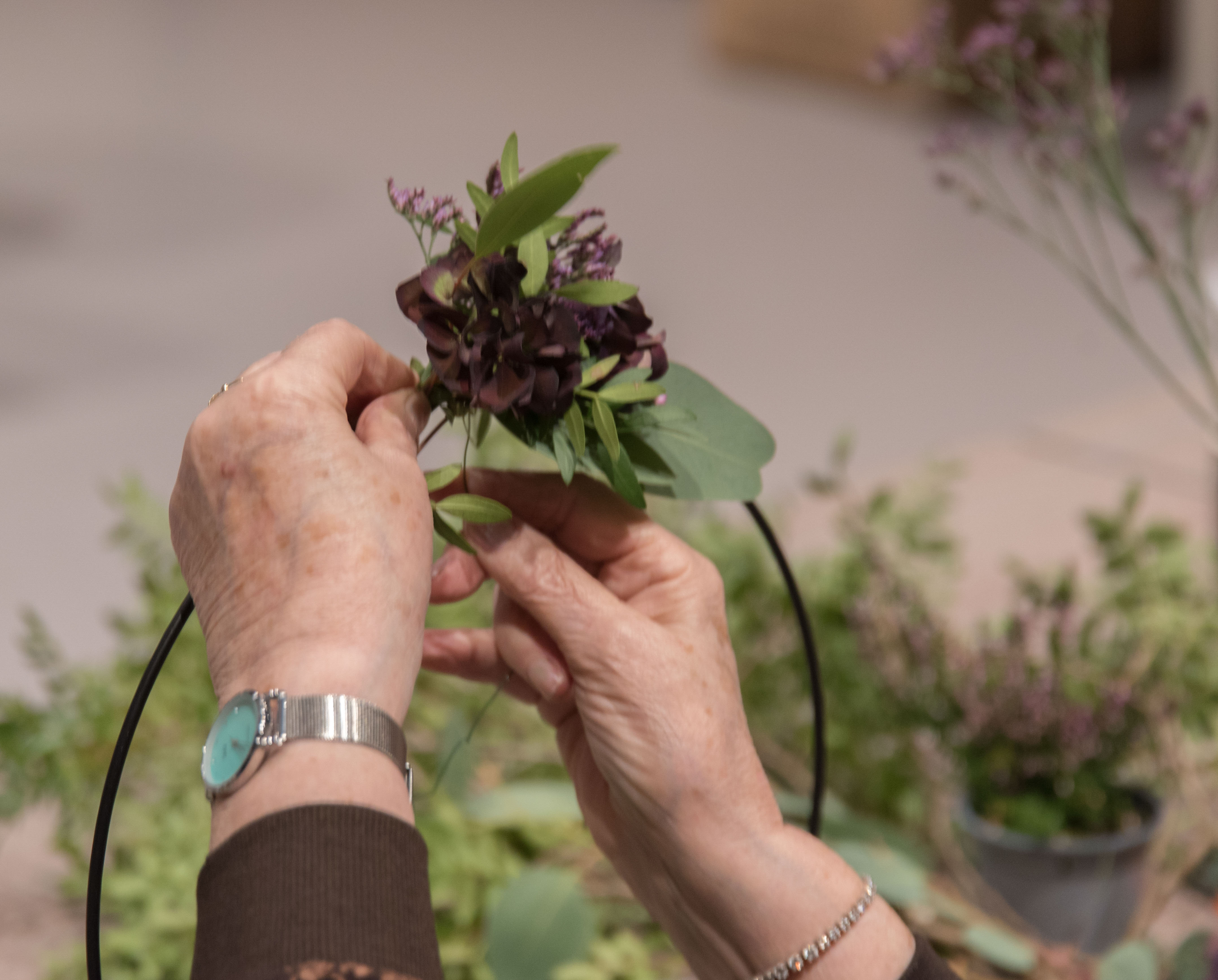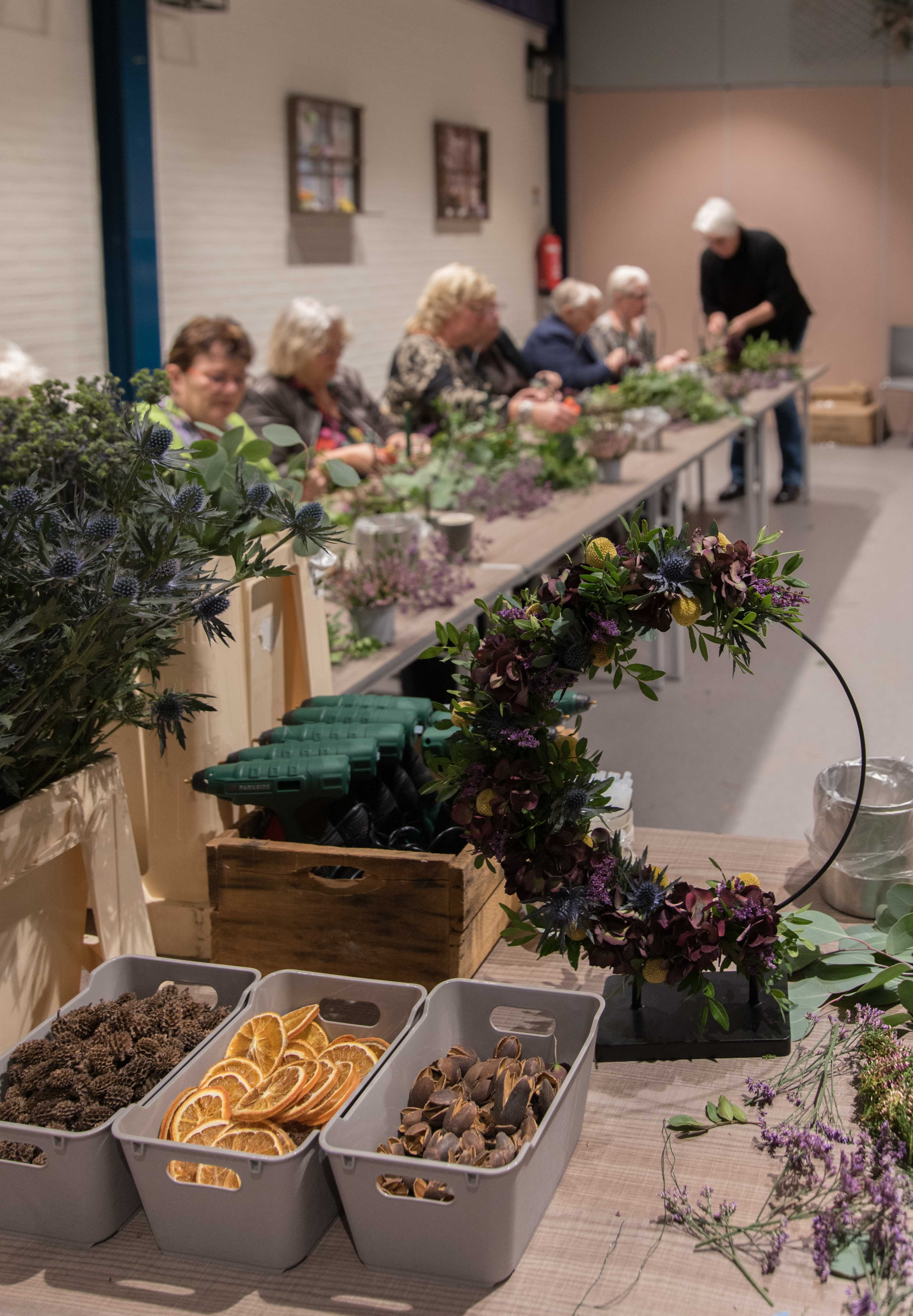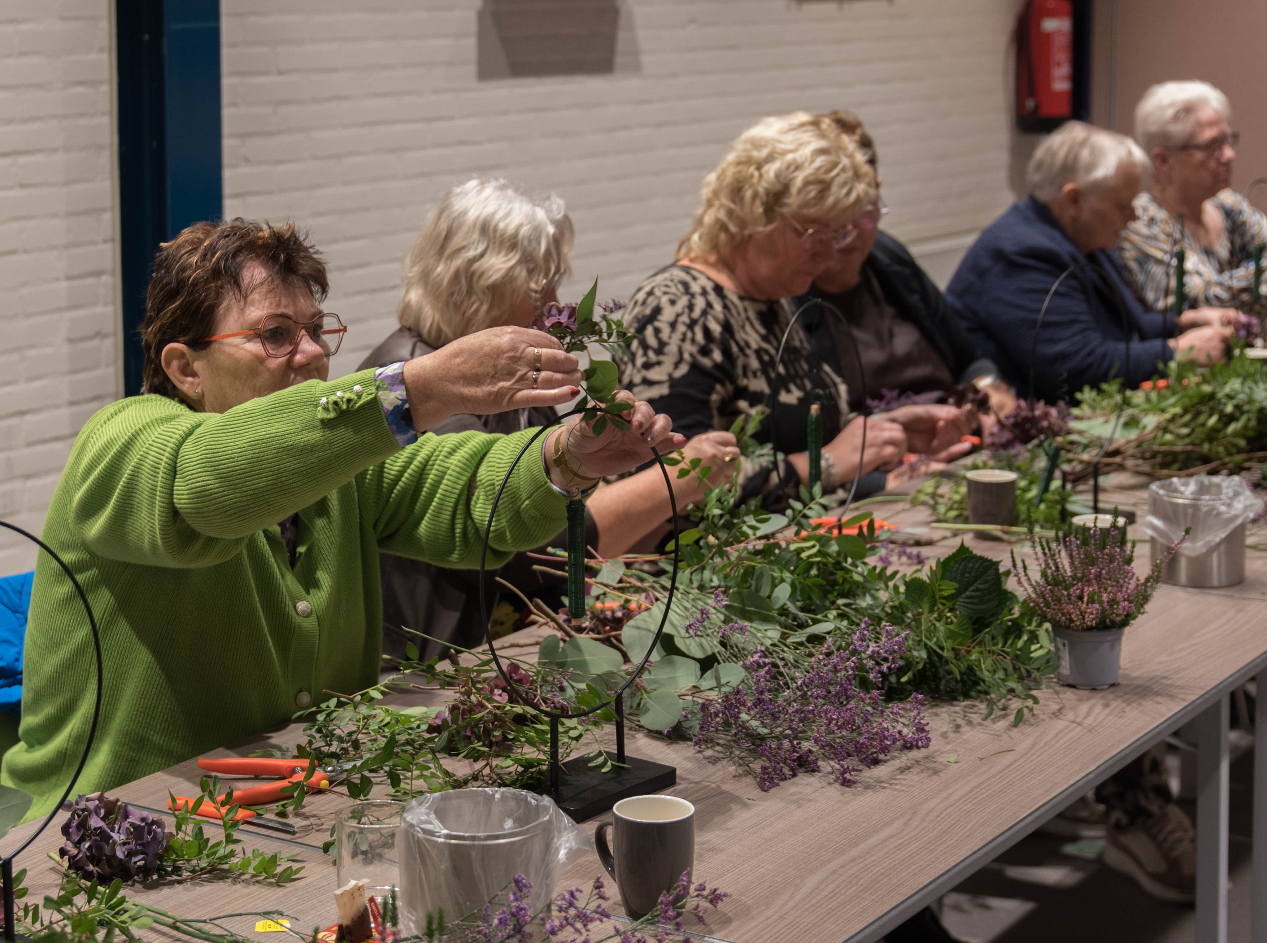Contactpunt Mantelzorg de Monden organiseerde een drietal avonden waar de deelnemers een prachtig bloemstuk op een standaard maakten.
