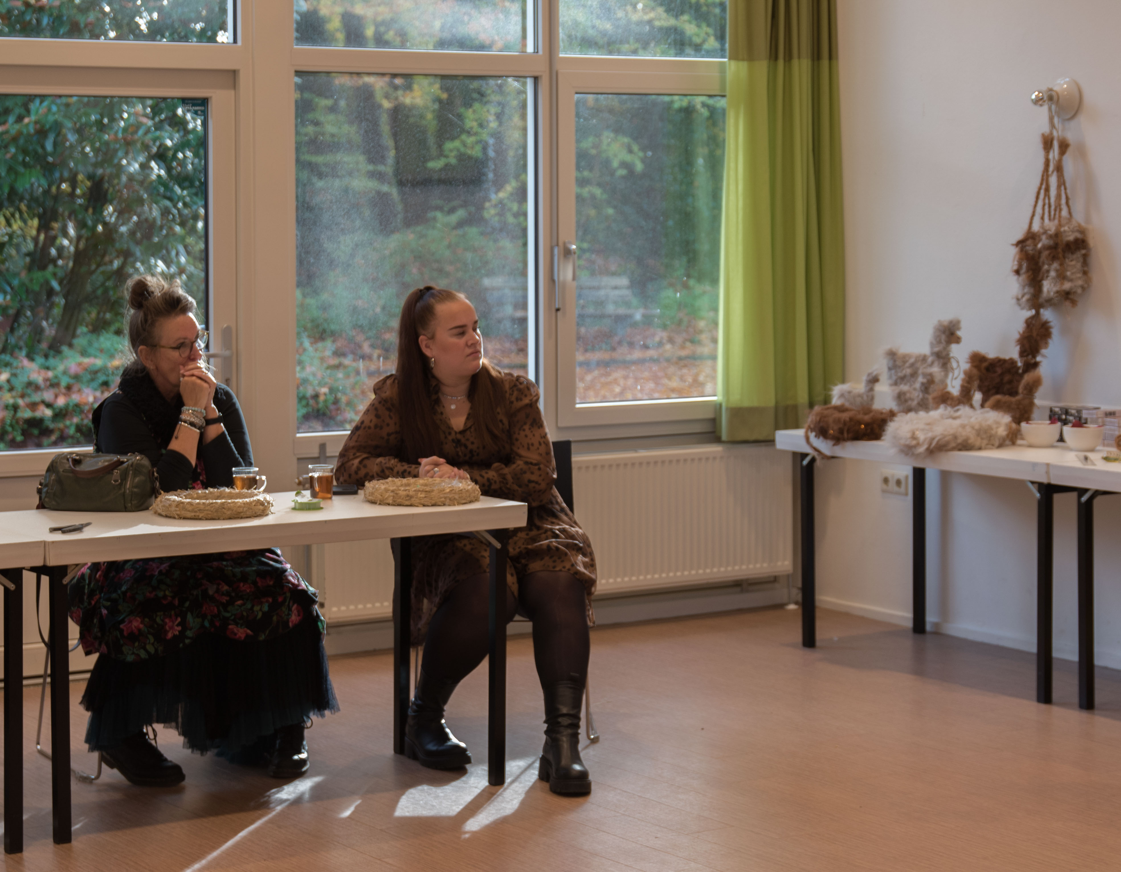 De deelnemers aan deze workshop gingen aan de slag met het maken van een krans die bekleed werd met alpacawol.