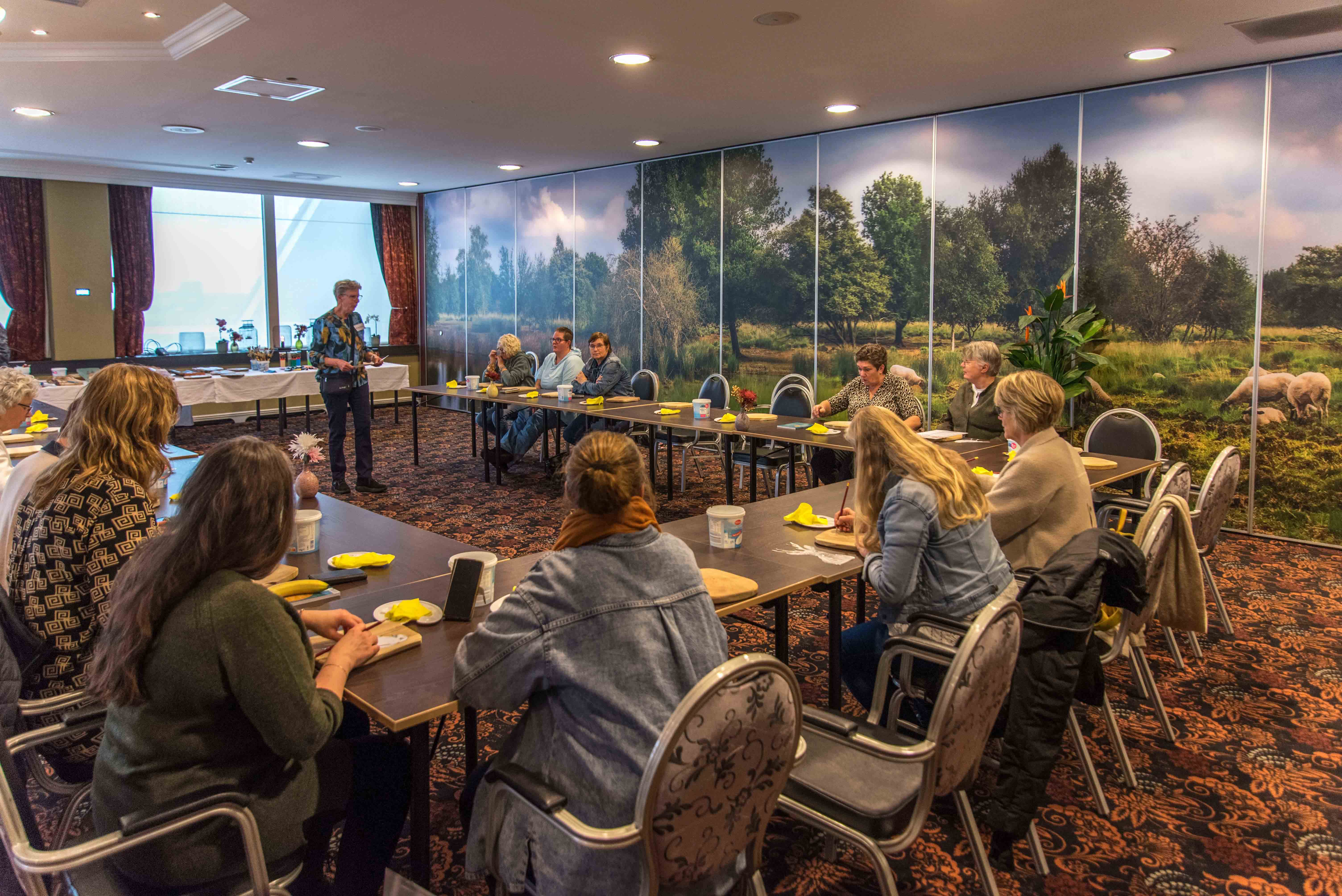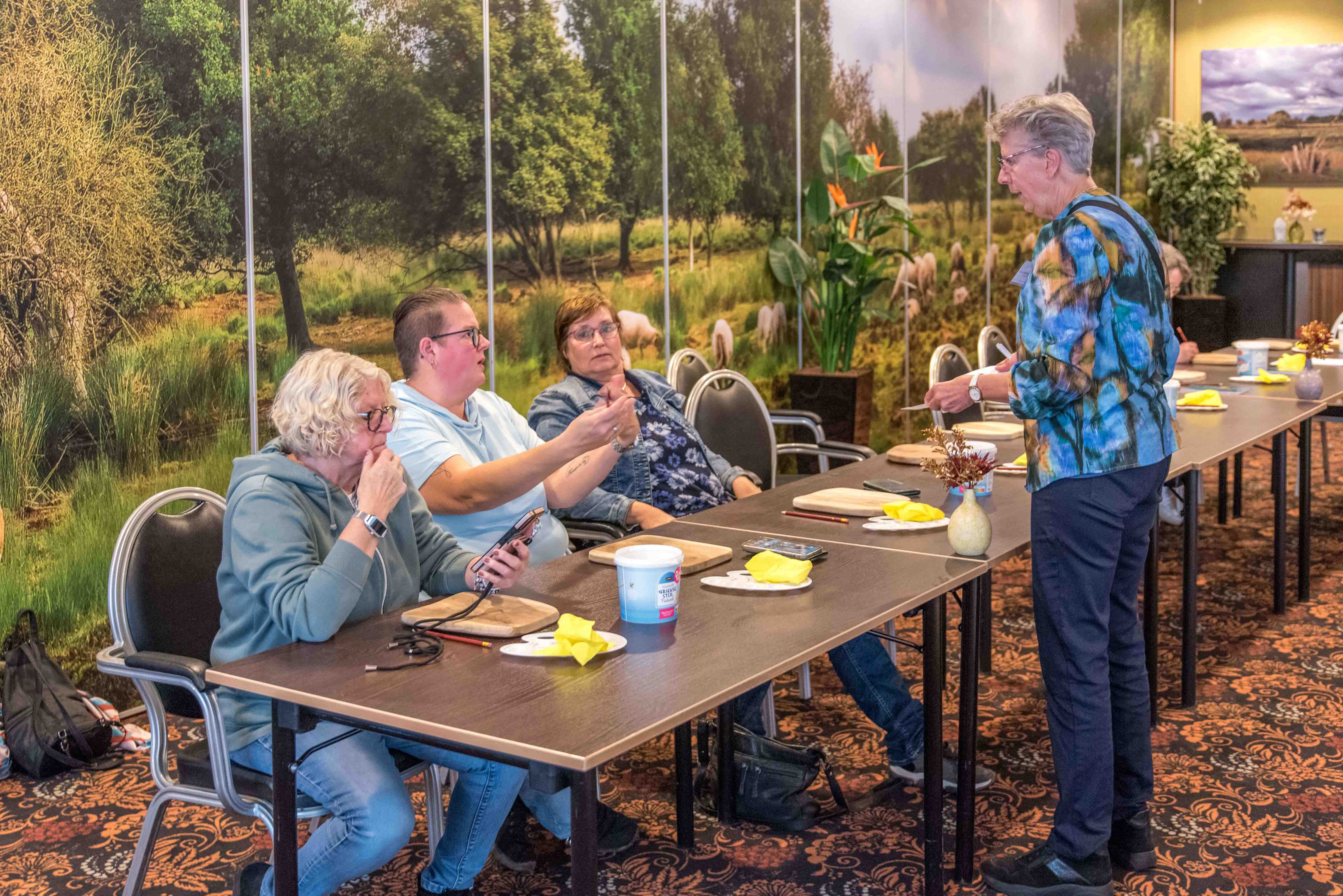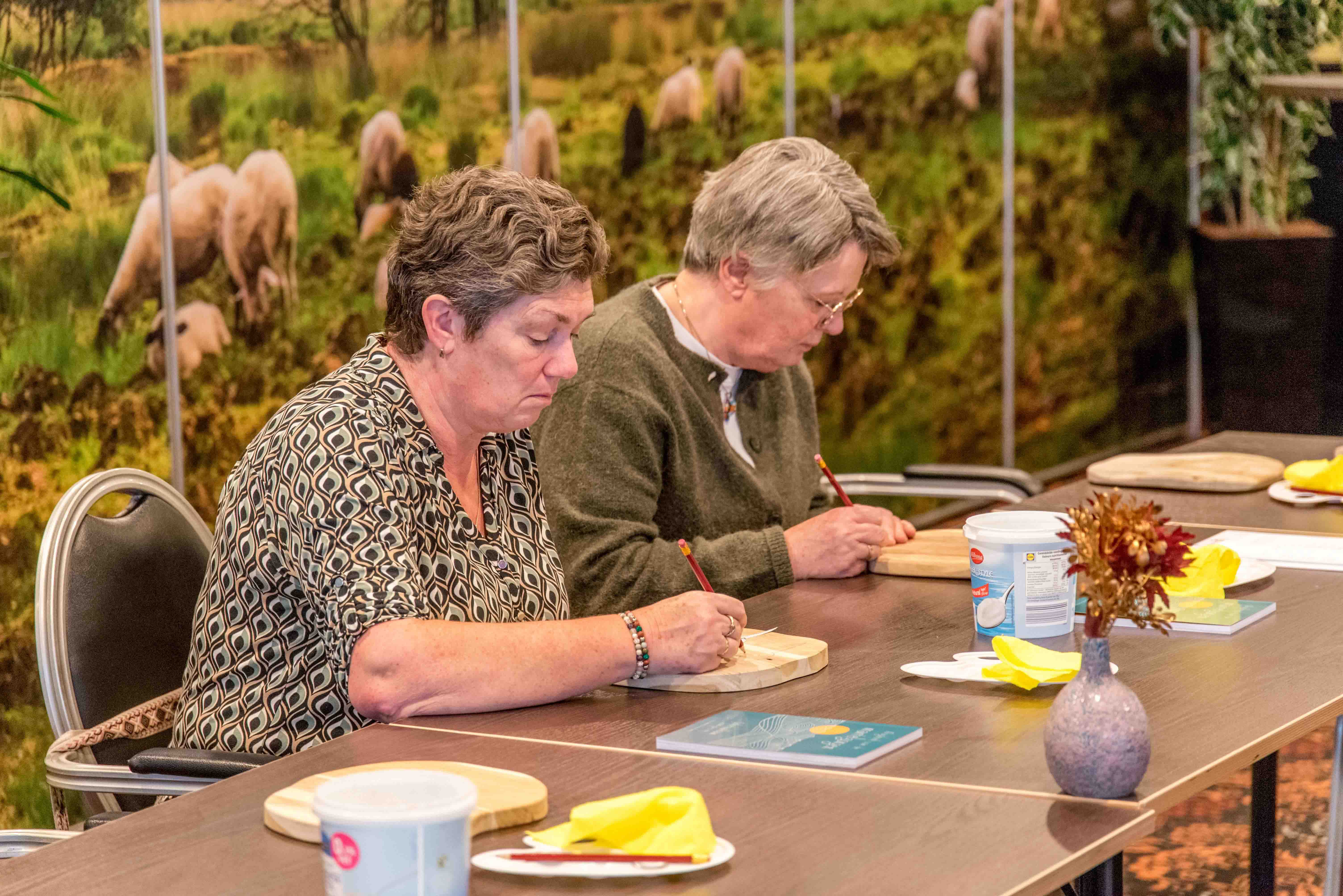 De deelnemers hebben op een teakhouten plank een schilderwerkstuk met acrylverf gemaakt. Ankie Hulst leidde deze workshop en na afloop was iedere deelnemer enthousiast over het bereikte resultaat.
