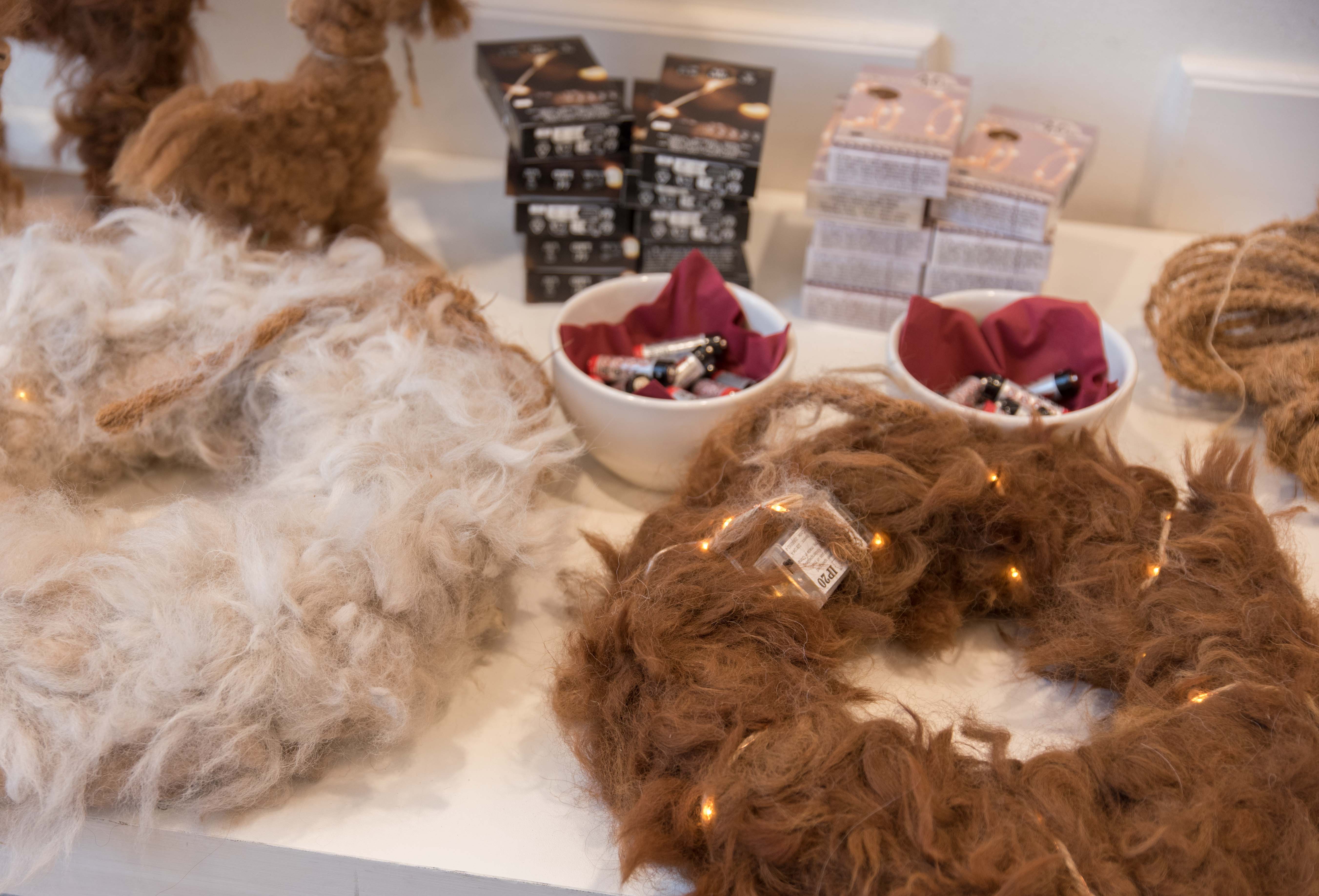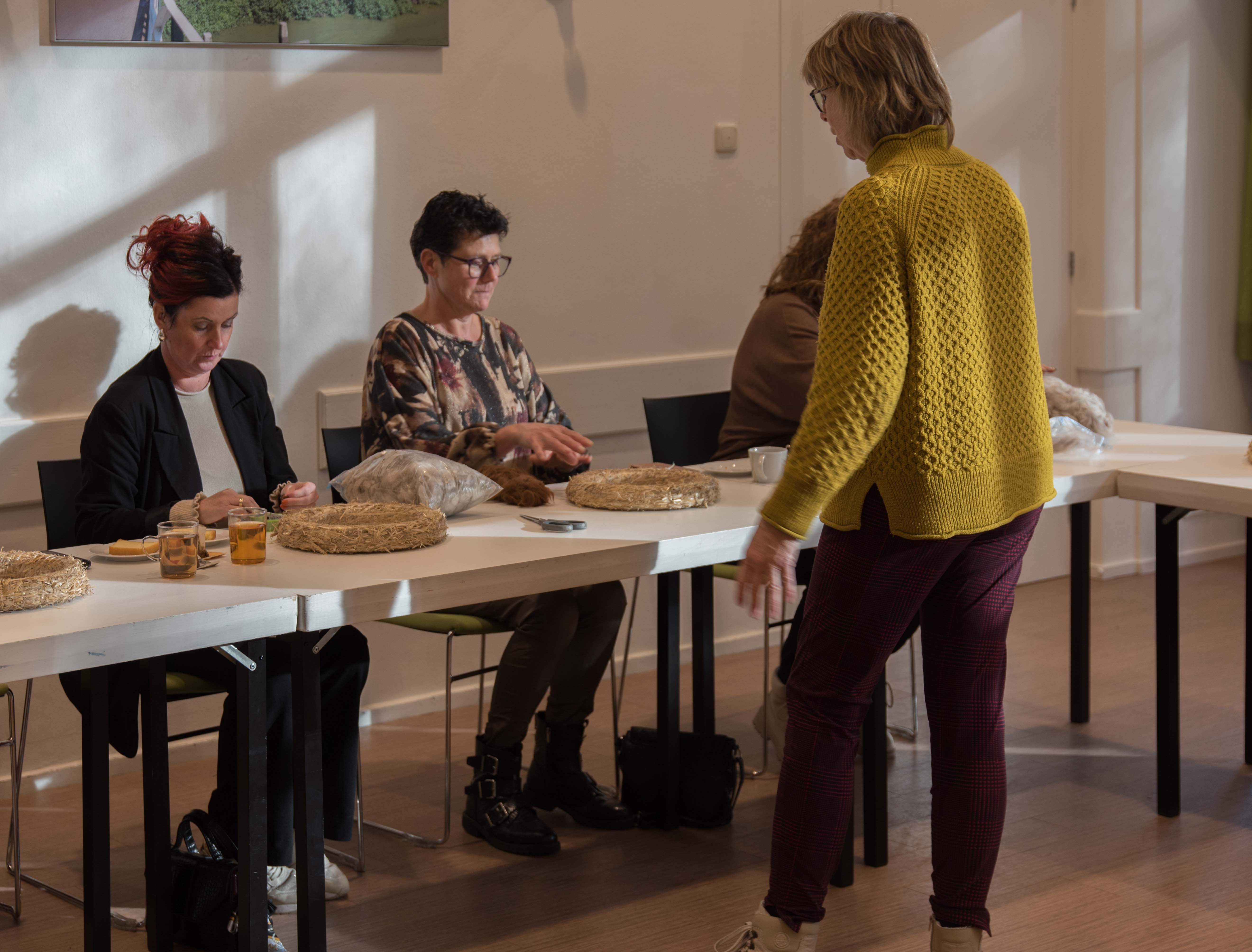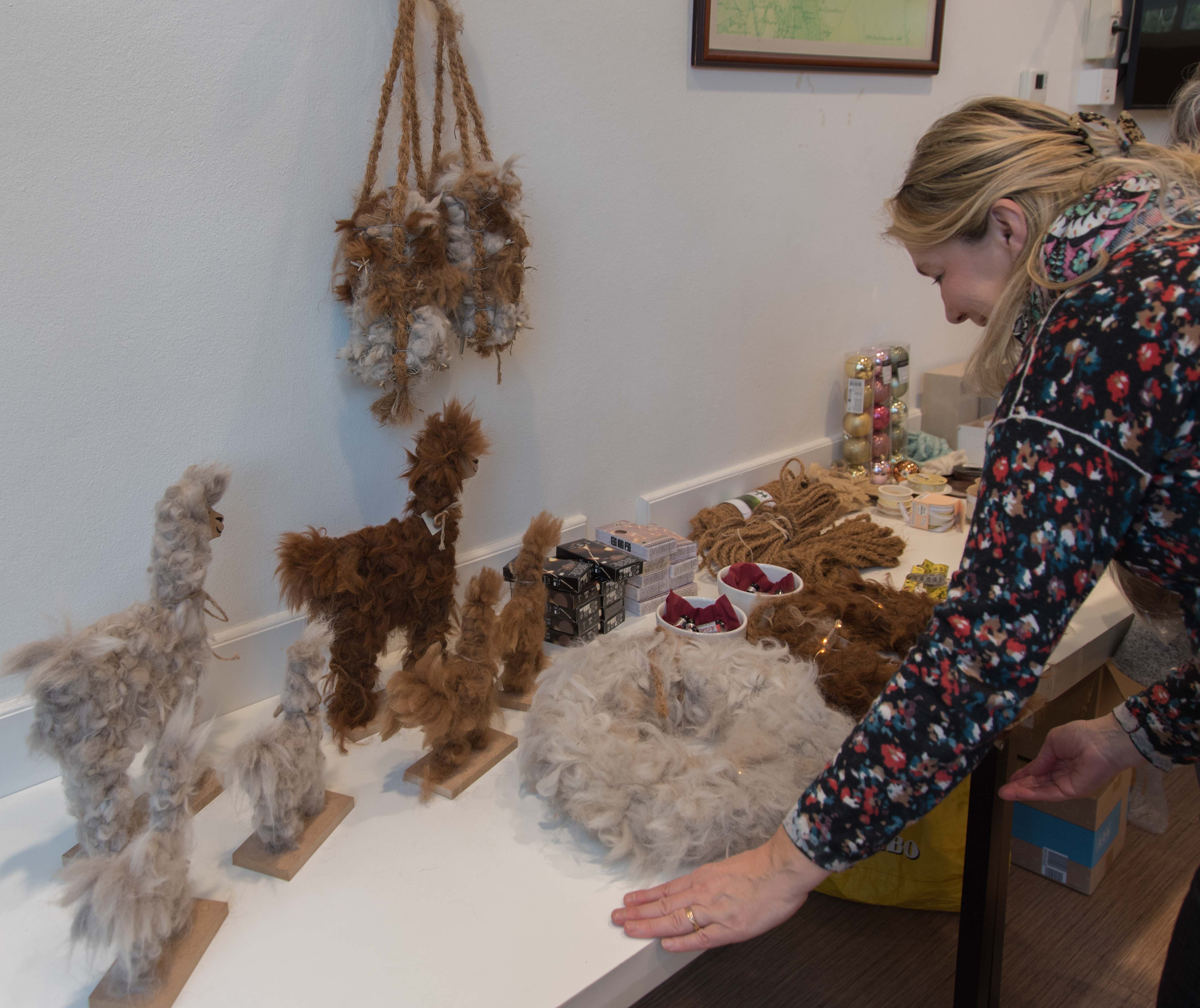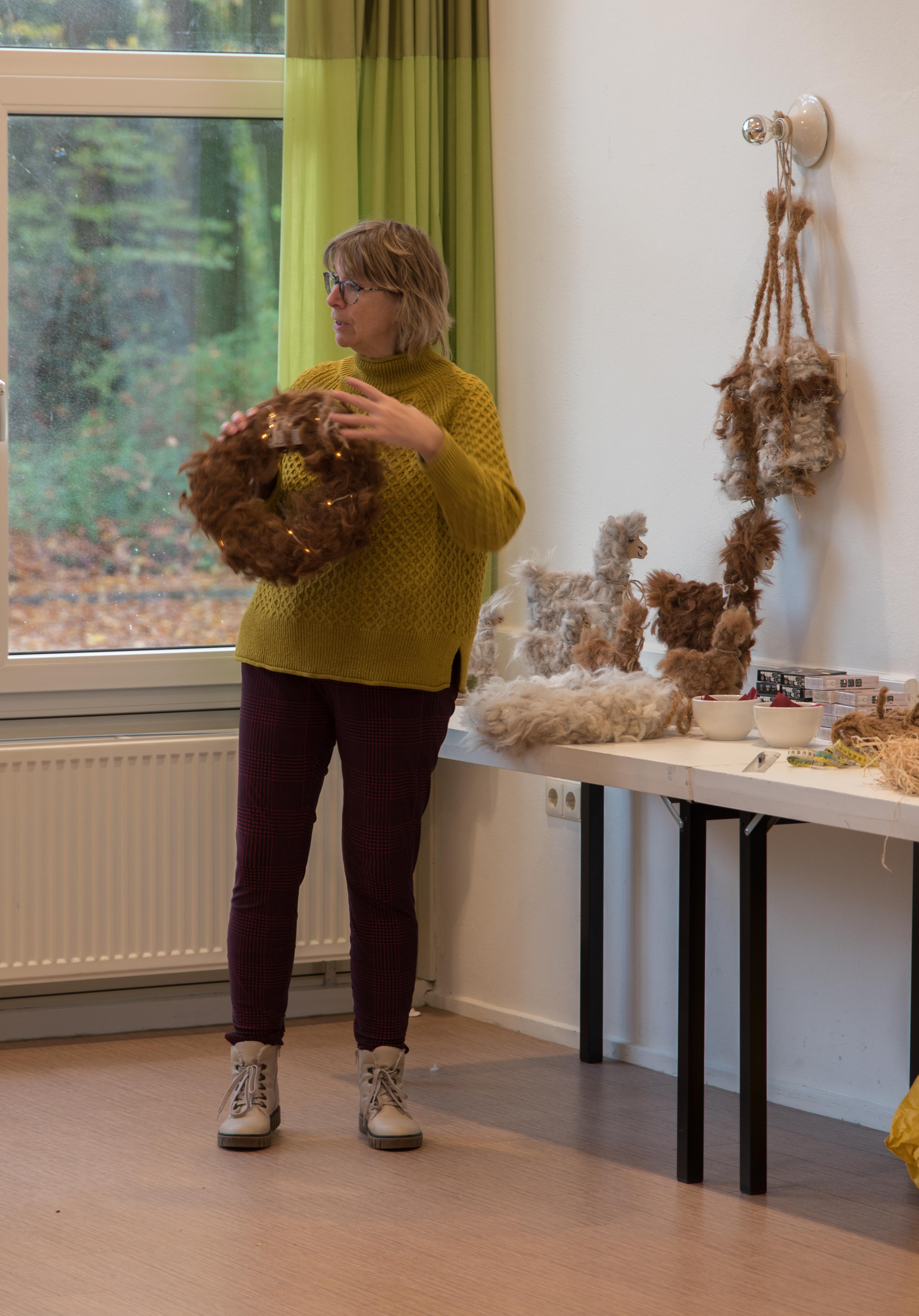 De deelnemers aan deze workshop gingen aan de slag met het maken van een krans die bekleed werd met alpacawol.