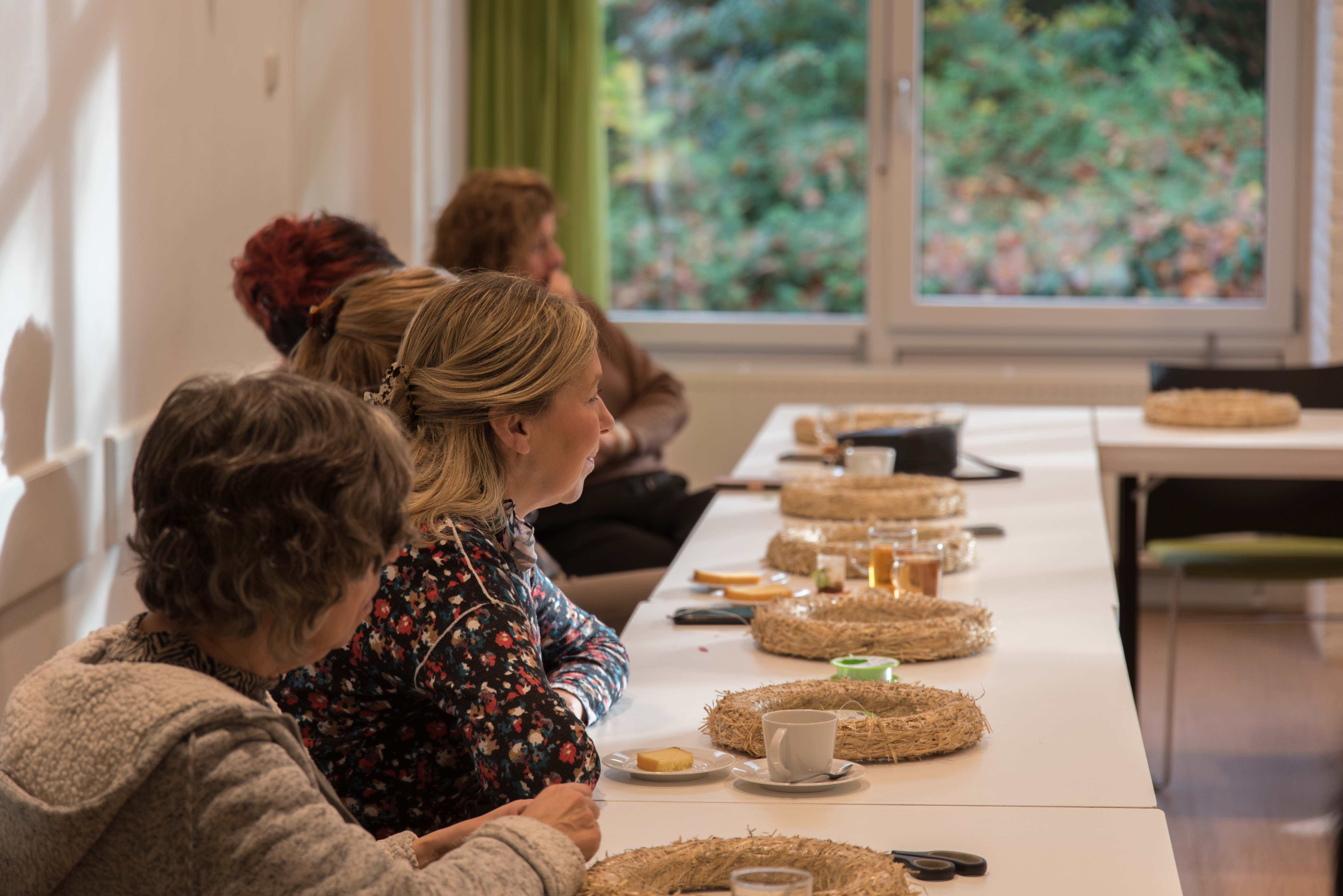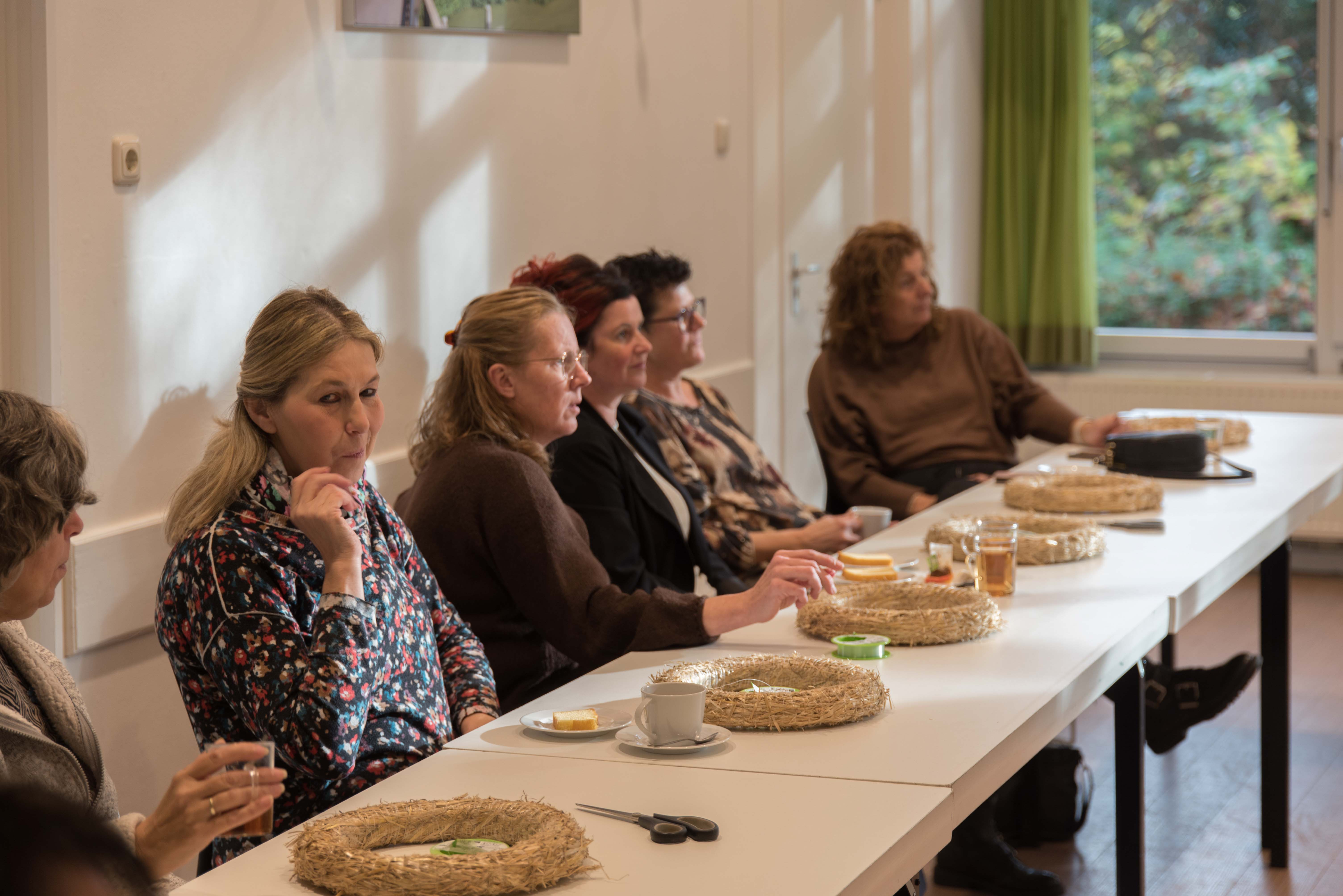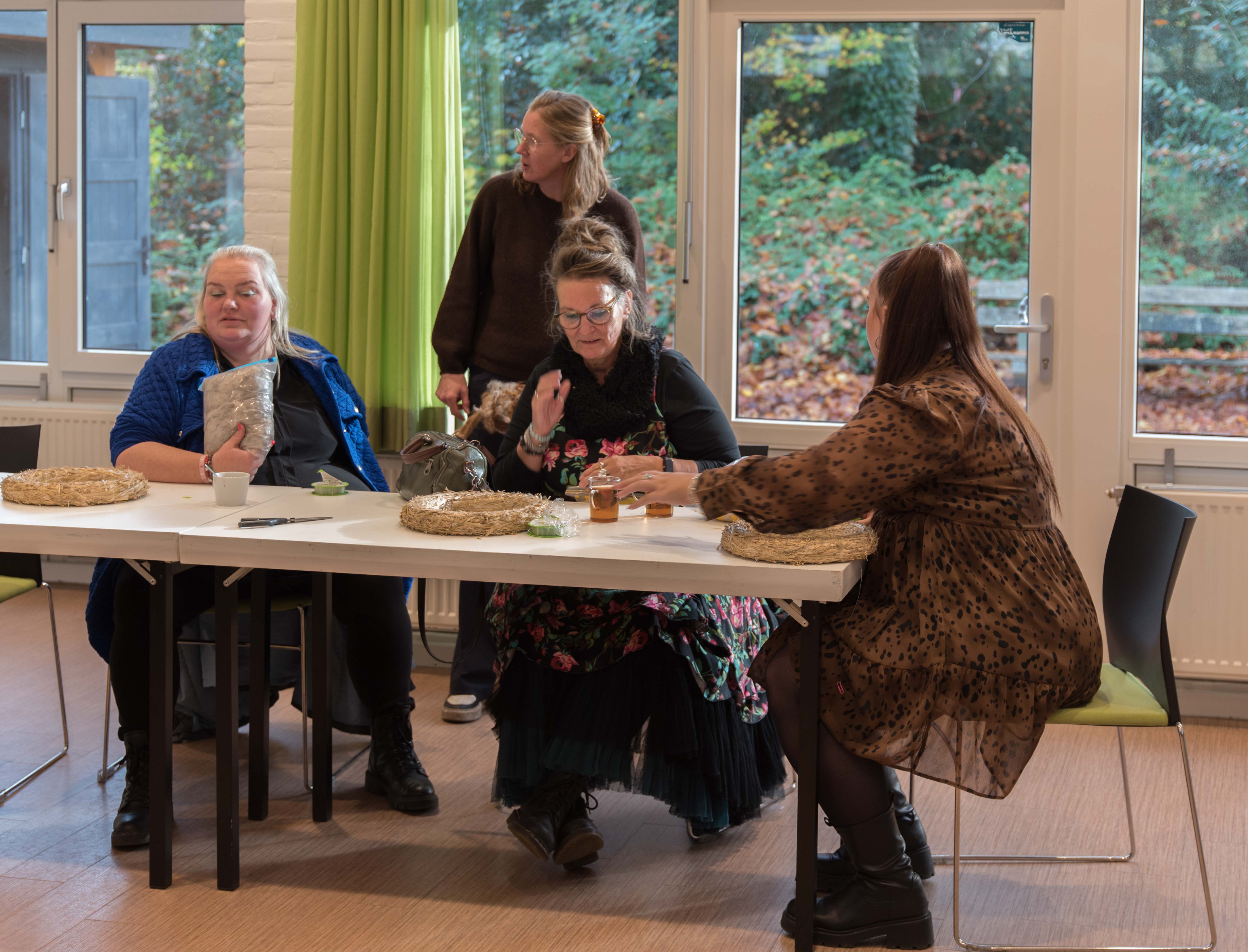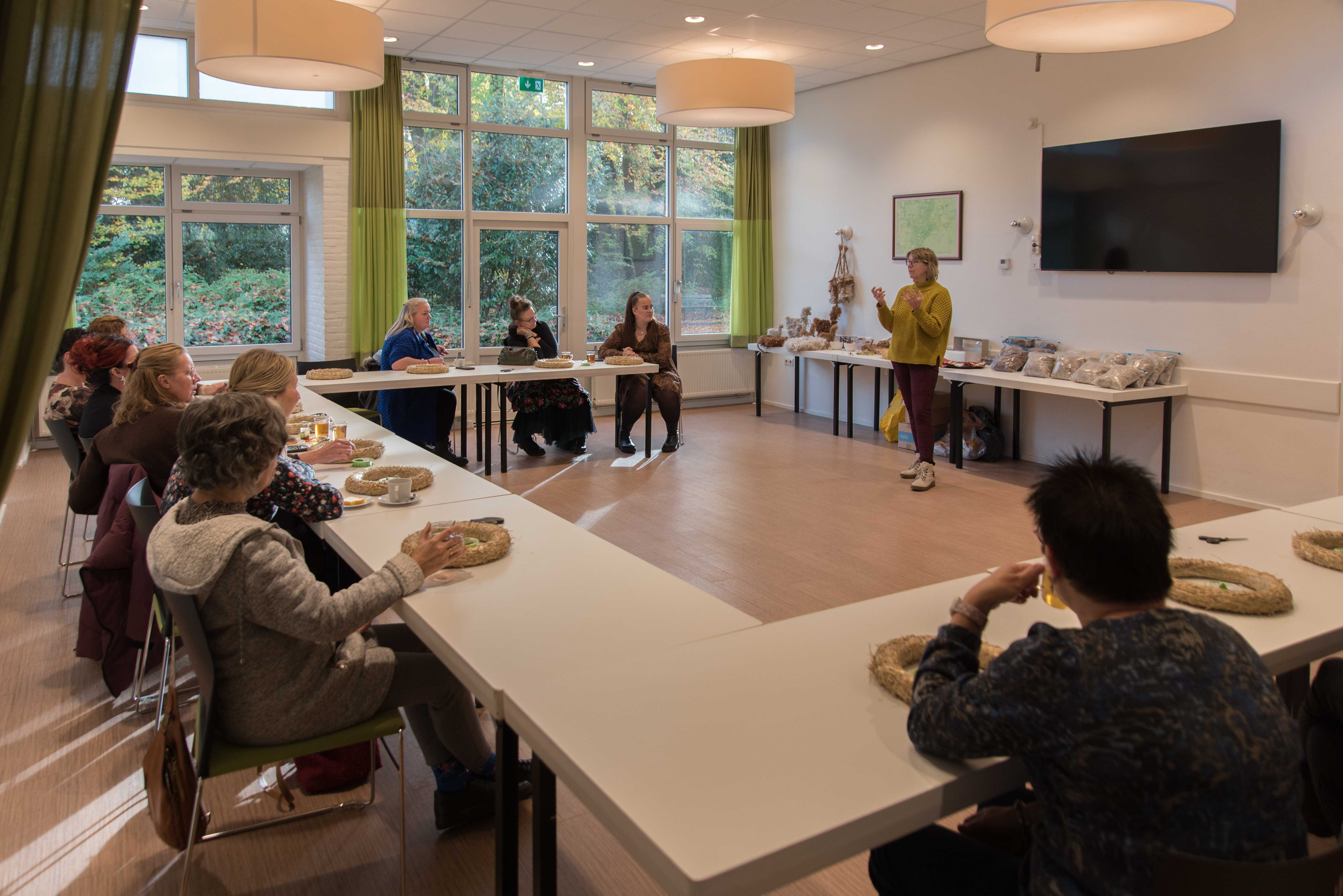 De deelnemers aan deze workshop gingen aan de slag met het maken van een krans die bekleed werd met alpacawol.
